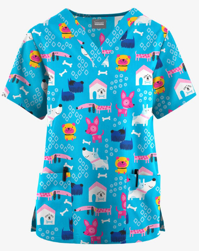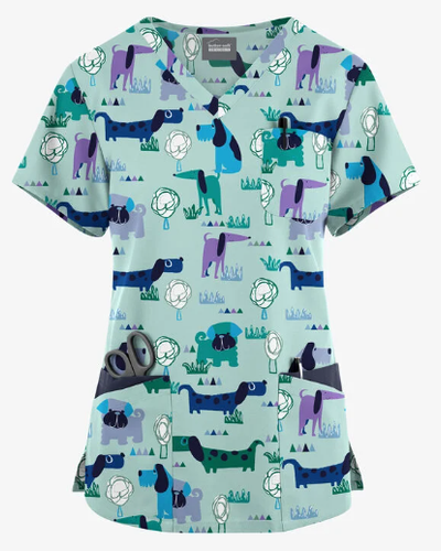 Fun Scrubs Playful Dogs Turquoise